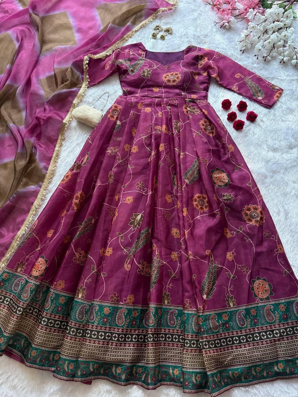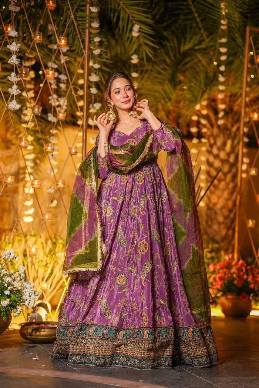 * Anarkali Gown * Pure Jimmy organza silk digital printed padded gown with 54+gown length !!Pleated Flair outfit ! 🔥