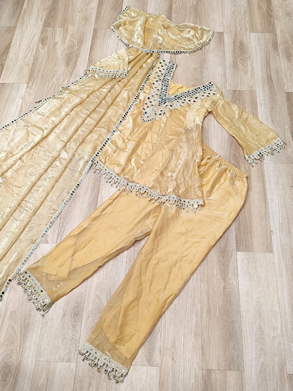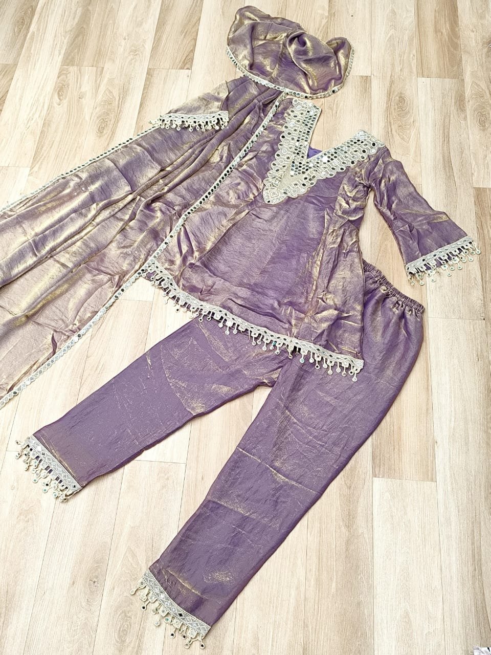 *FABRIC & WORK* :- Fendy Fabric With Real Mirror With Coding Embroidered Lace work