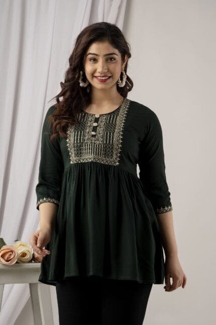 GREEN EMBROIDERY DESIGNER TOPS