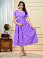 PURPLE RANGOLI FLORAL MATERNITY DRESS