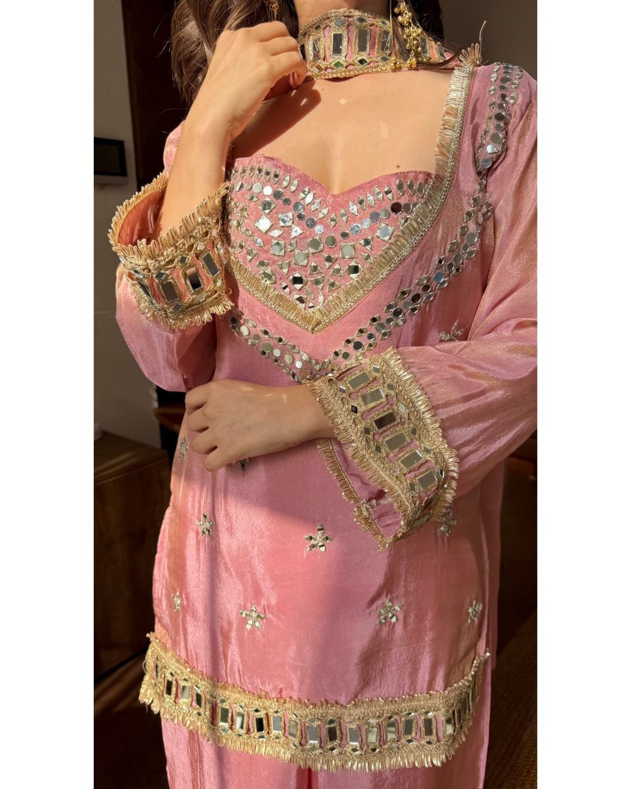 • *Design:* *Real Mirror Work with Lace Border*
